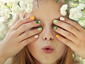 Clean cuticles, trim and shape nails, massage with lavender oil and/or hand lotion, wrap in warm towel and polish with regular color.